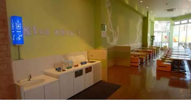 ↑兒童區(qū)內(nèi)所有設備尺寸都小一號。桌椅,洗手池都是兒童尺寸。